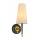 Светильник бра Simple выполнен на основе металлического каркаса, состоящего из золоченных и черненных элементов. Лампа с белым абажуром в форме усеченного конуса, который по центру крепится к круглой планке отходящие от цоколя. Текситльный абажур мягко рассеивает исходящий от лампочек световой поток и способствует созданию в комнате приятной обстановки.