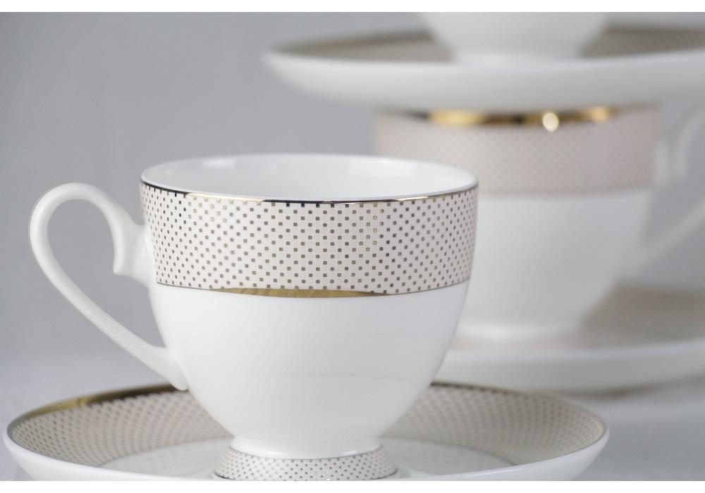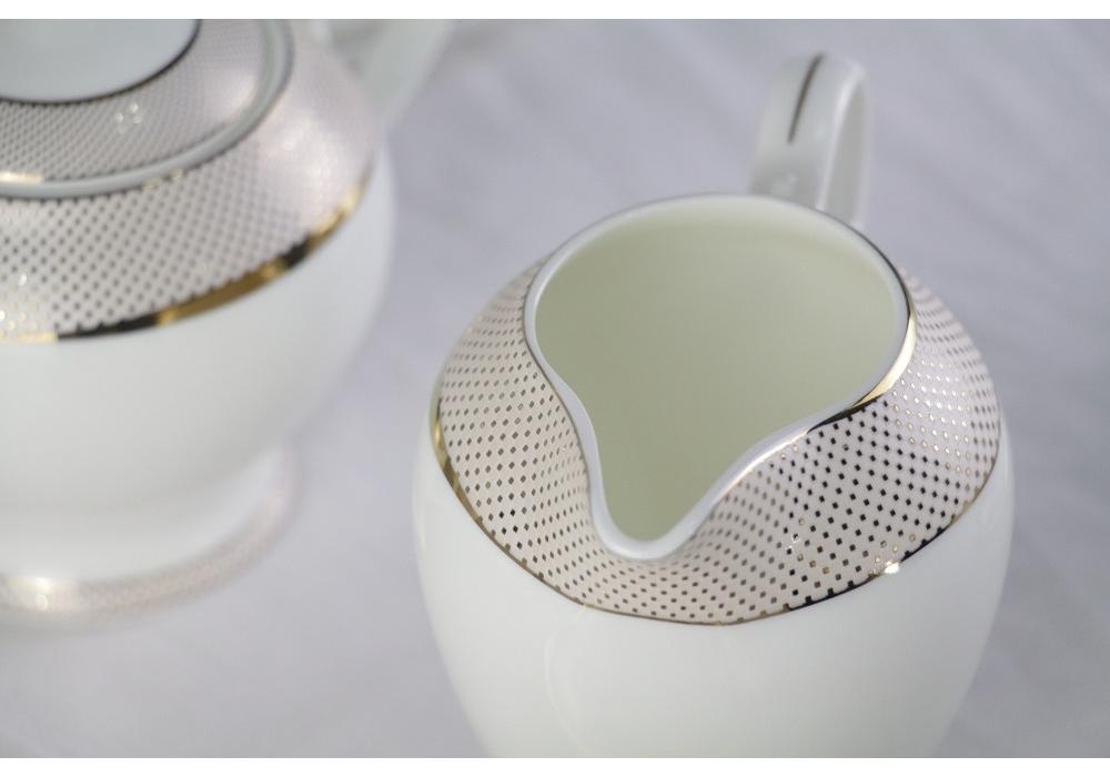 Этот нежный, обворожительный набор посуды станет элегантным столовым аксессуаром на Вашем столе. Его белый цвет отлично гармонирует с золотыми узорами. Такое удачное сочетание добавит тепла в Ваш интерьер.