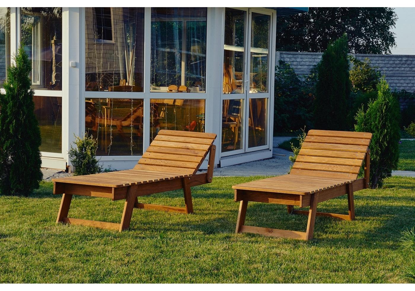 Шезлонг производится из массива дуба. Проходит термическую обработку и пропитку в экологически чистом масле с содержанием 30% парафина, применяемого в косметической отрасли. Эта технология не дает возможности проникать в древесину атмосферной влаге или прямого попадания воды(дождя). Мебель имеет натуральный цвет с хорошо выраженной структурой. Дополнительно не покрывается никакими красителями или пропитками.