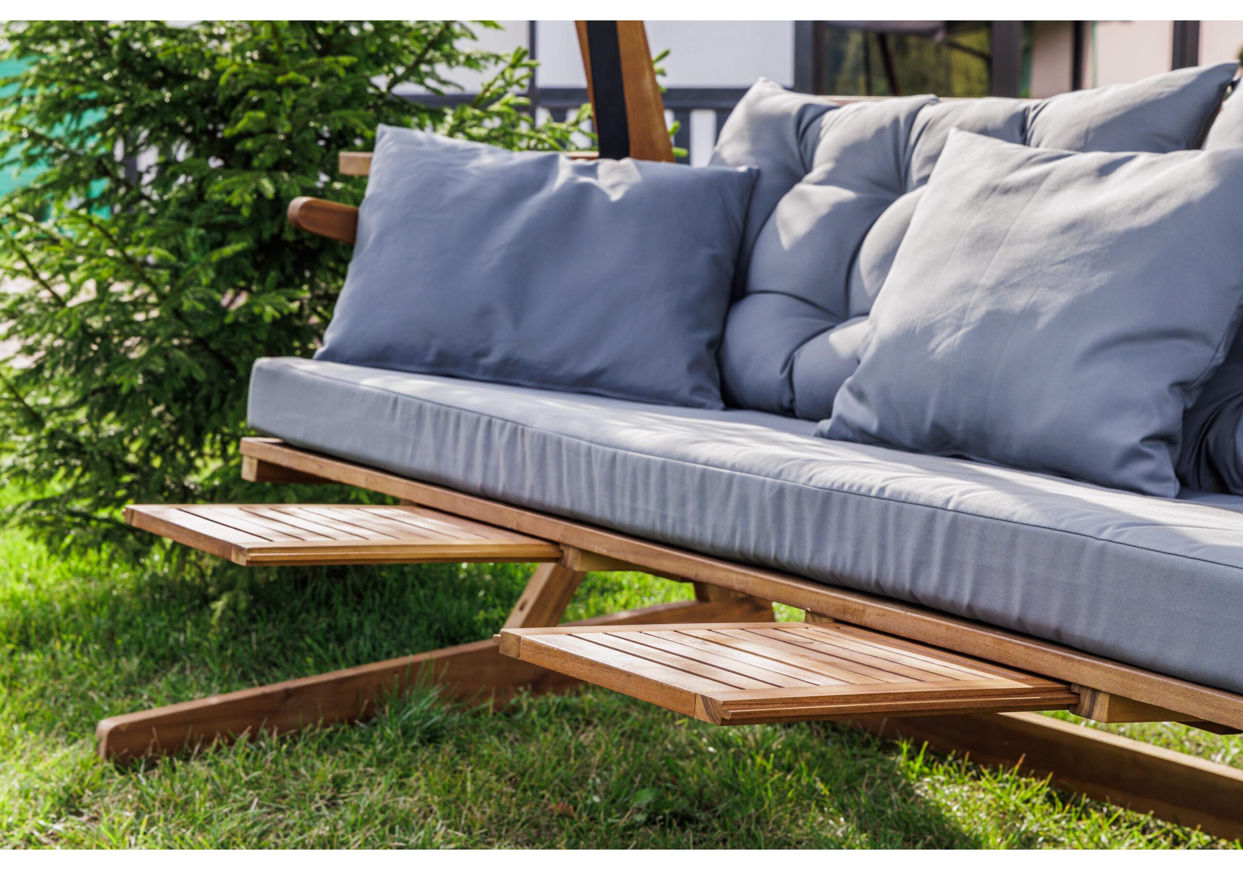 Невероятно удобная и универсальная модель – широкие подлокотники позволят вам поставить чашку чая или бокал вина. Качели можно легко разложить, и они превратятся в большой лежак, на котором можно комфортно вздремнуть на свежем воздухе.