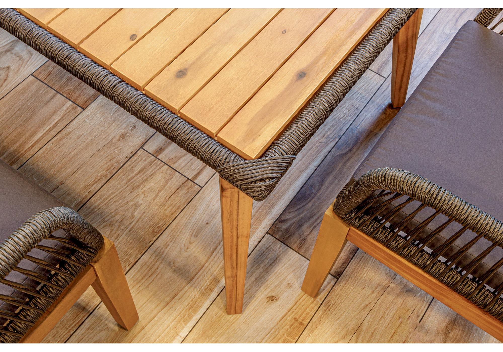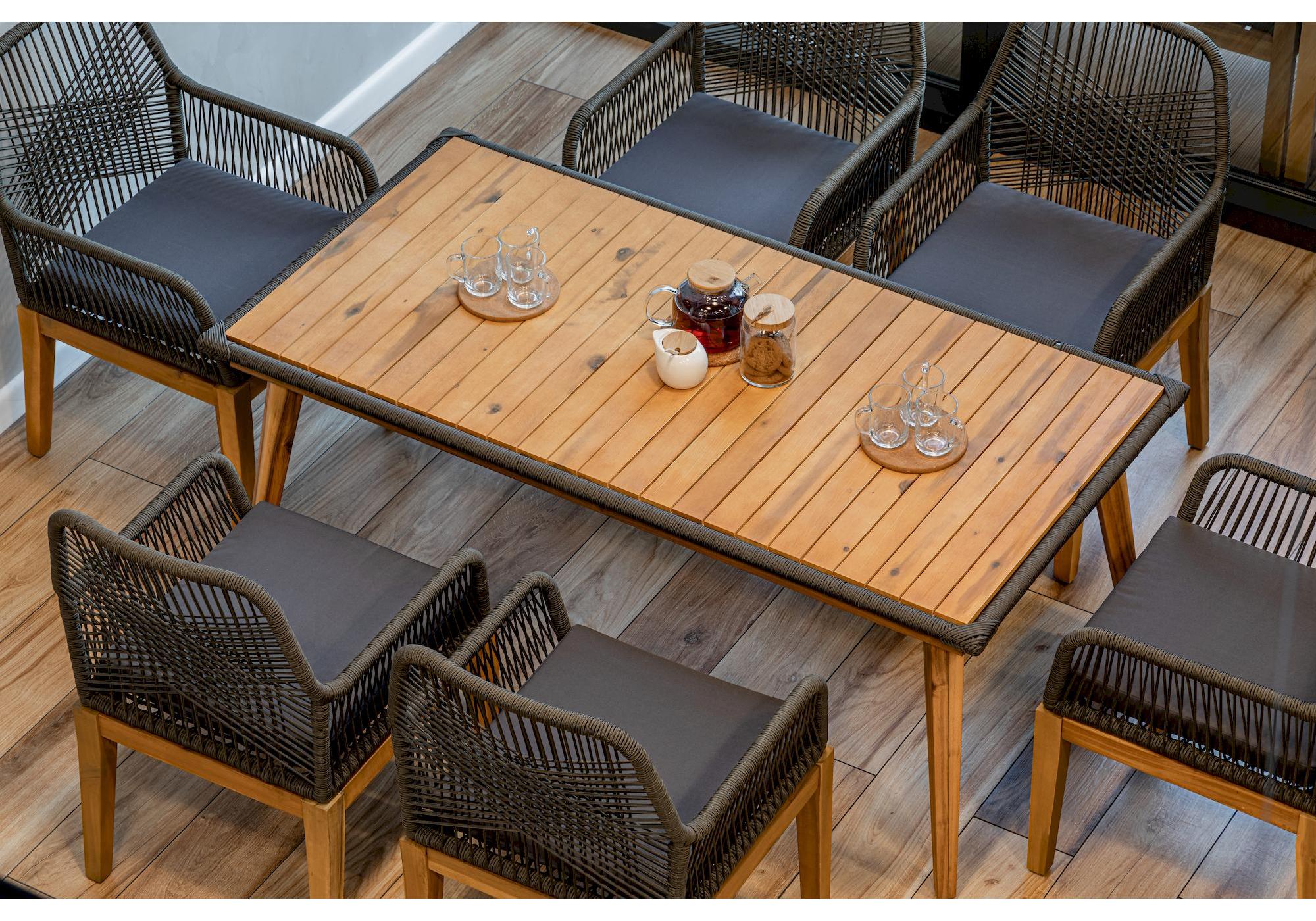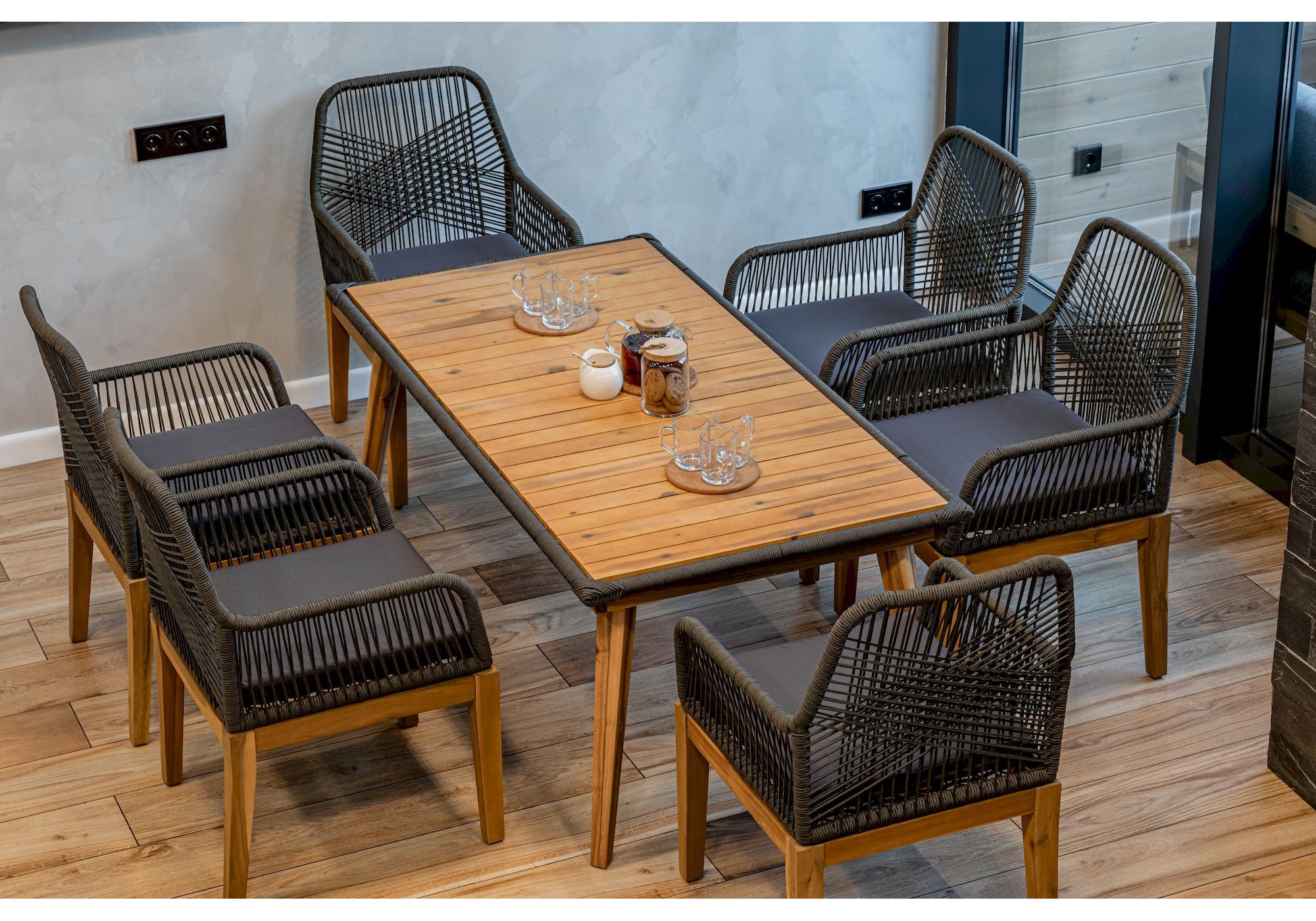 Выберите обеденный комплект из акации CHLOE в сером цвете и наслаждайтесь комфортом и красотой вашего уличного интерьера!