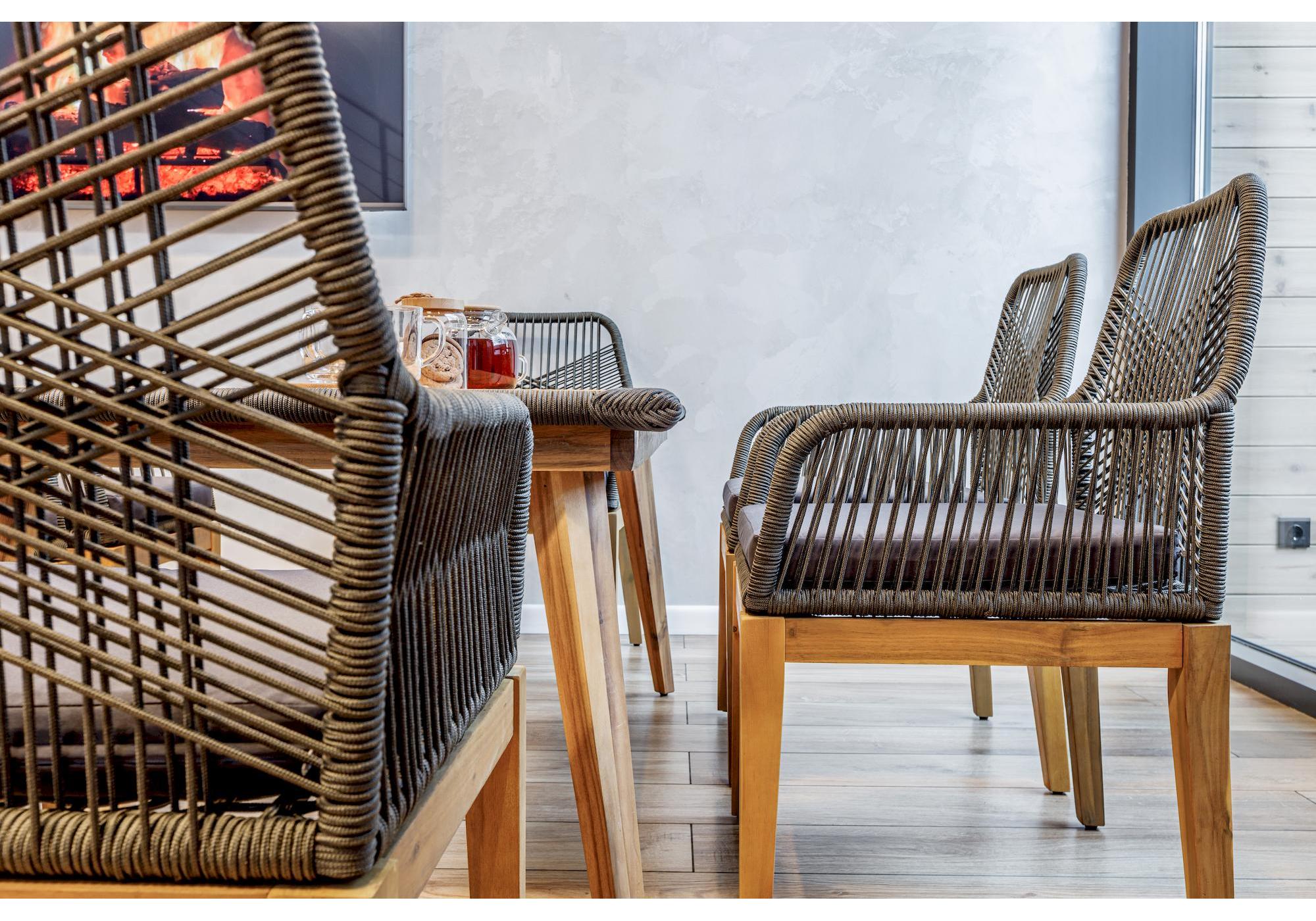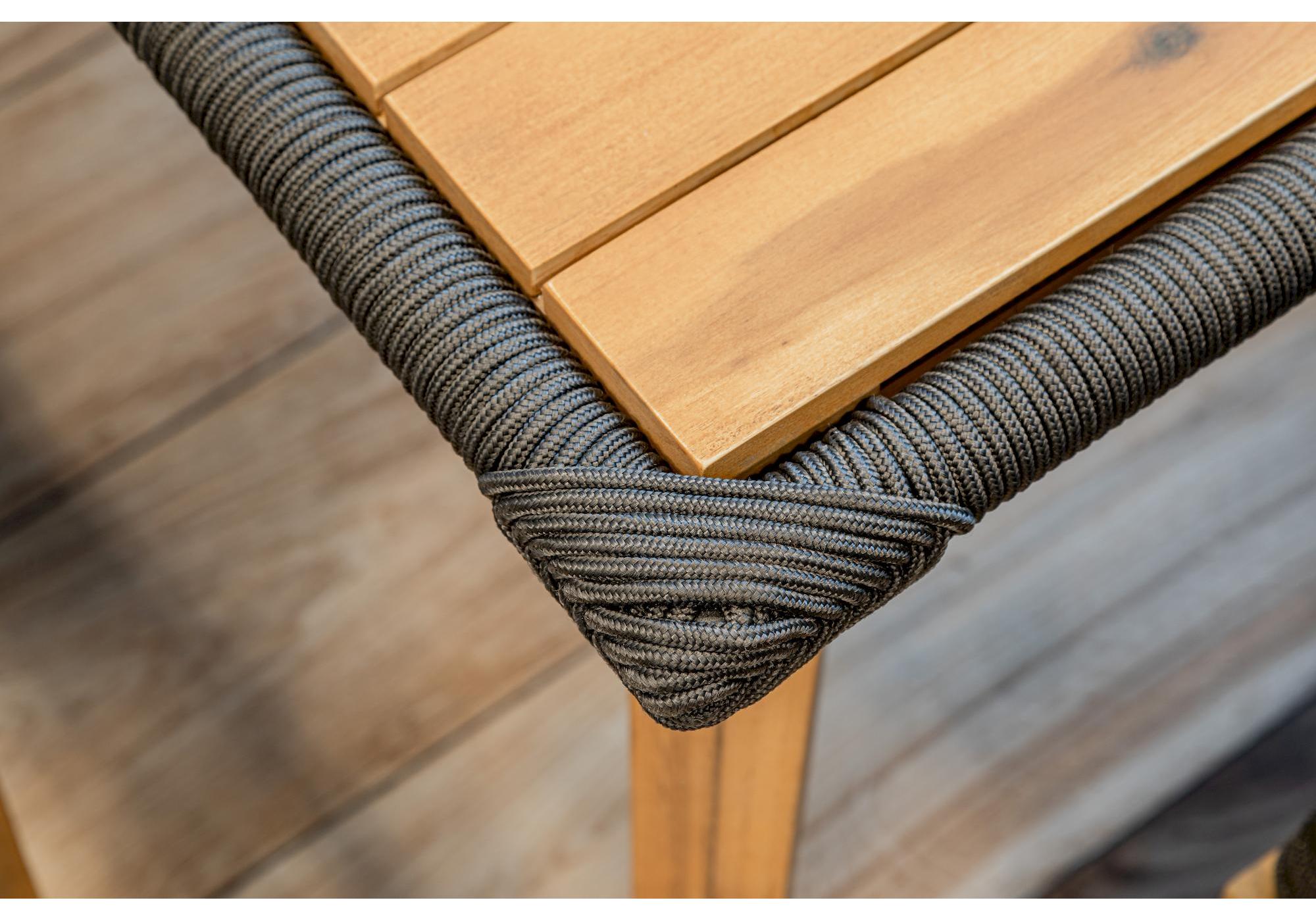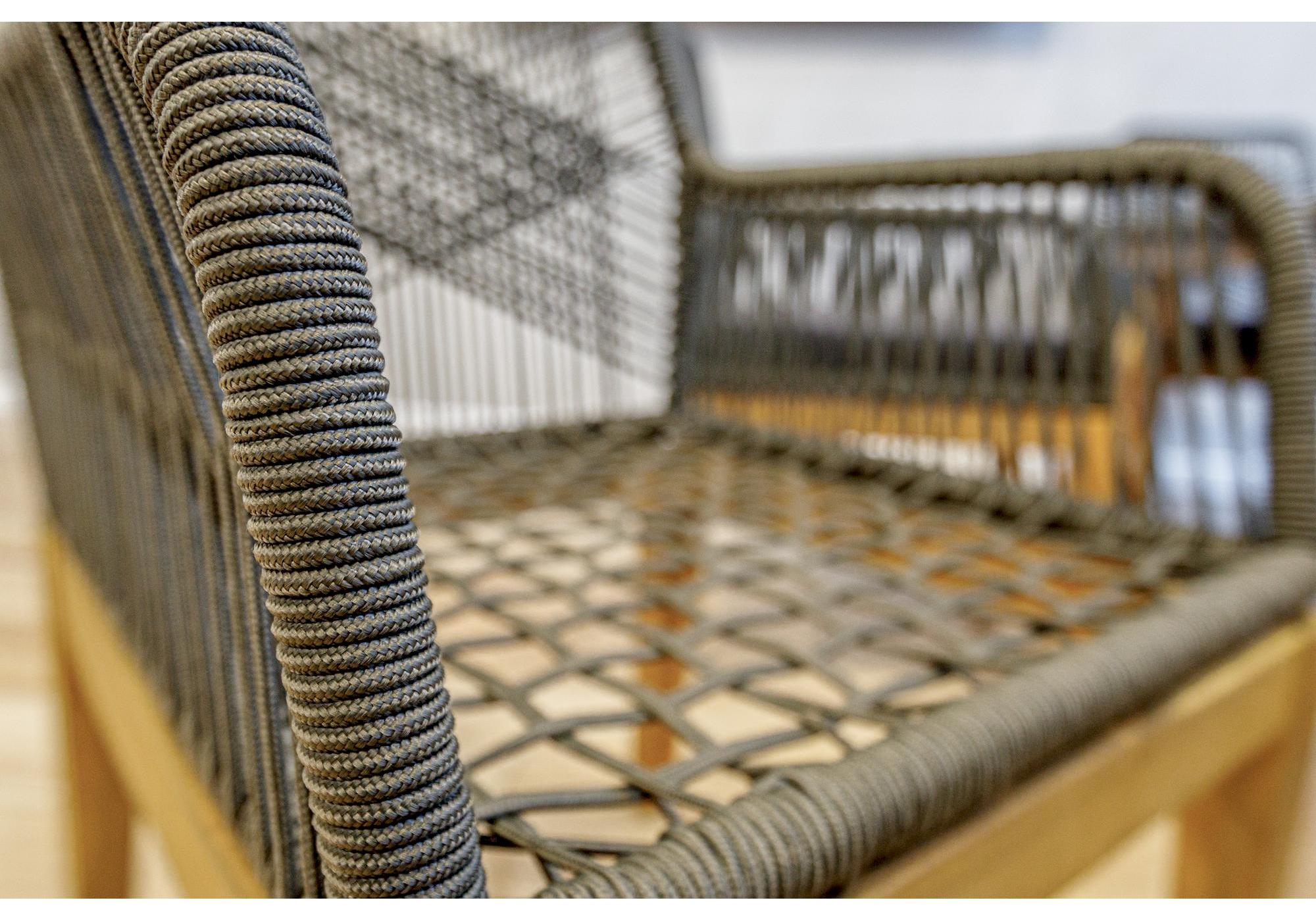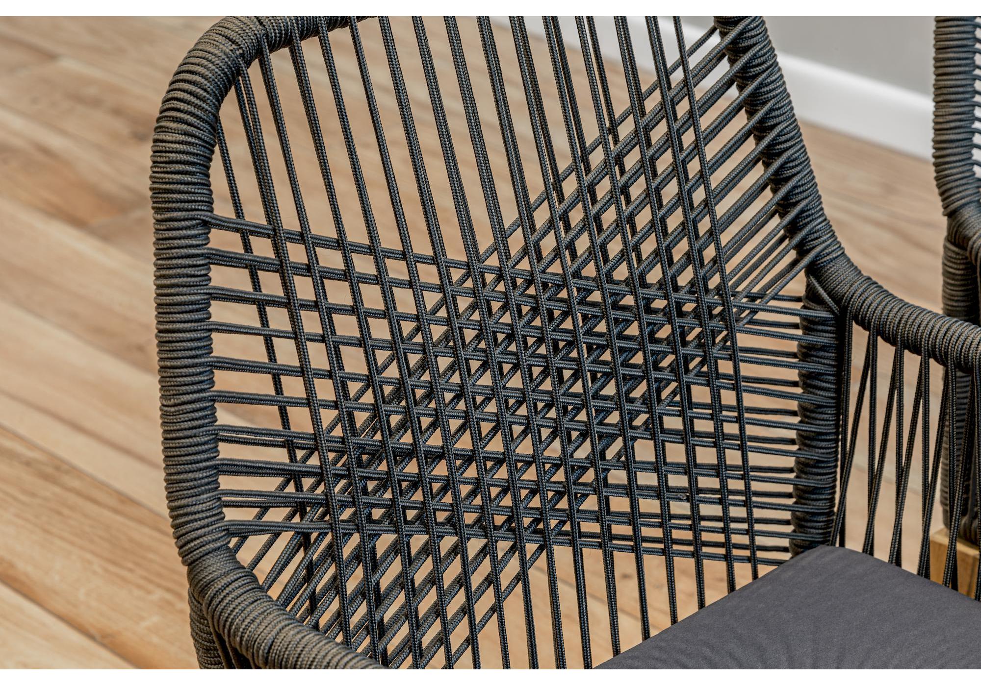 Обивка кресел выполнена из уличной веревки серого цвета, которая не только придает мебели элегантный вид, но и обладает устойчивостью к различным погодным условиям. Роуп не выцветает под воздействием солнца, что гарантирует сохранение первоначального вида мебели на протяжении долгого времени.