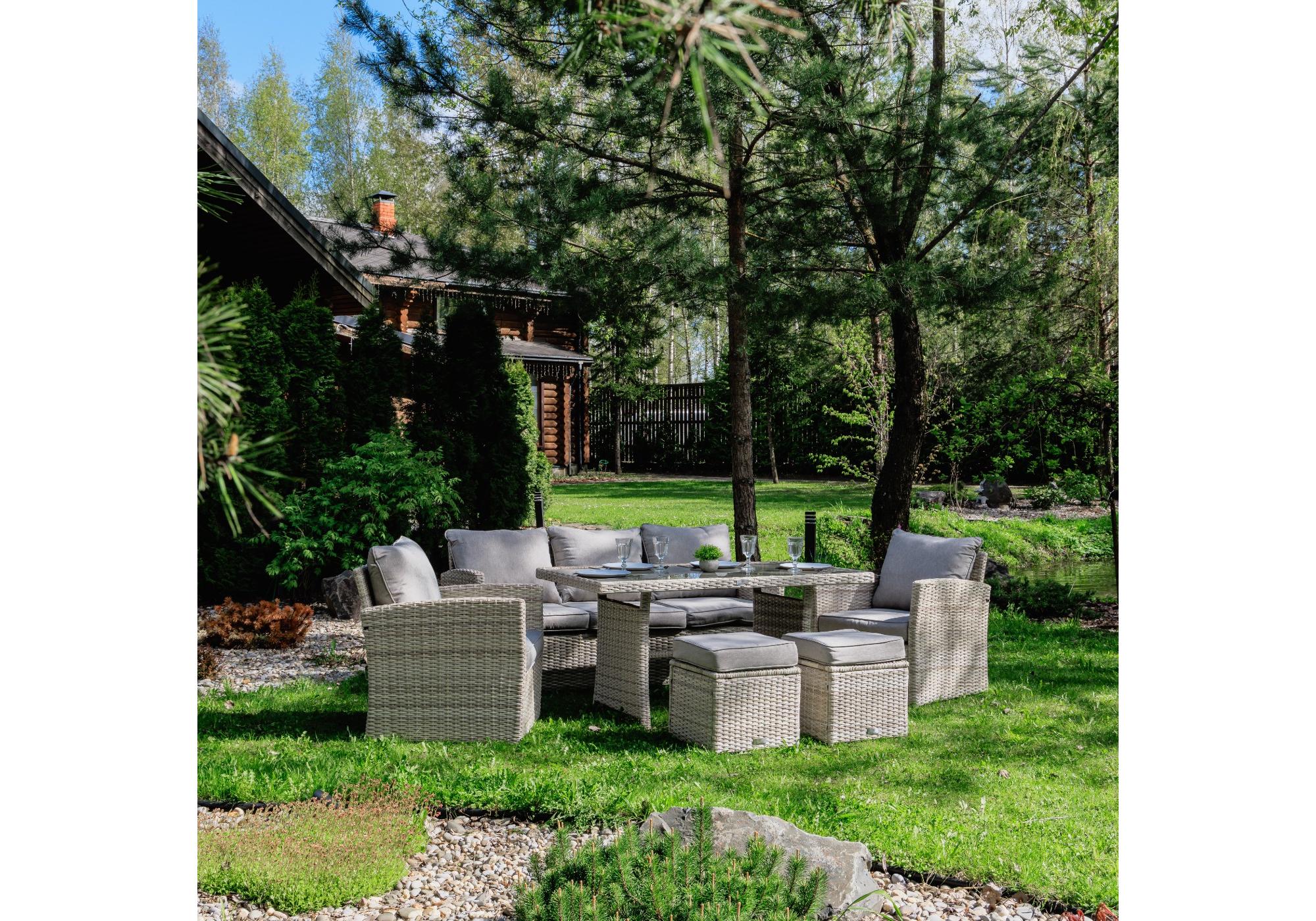Добро пожаловать в мир элегантных и удобных наслаждений с комплектом садовой мебели ZOYA. Изготовленный из искусственного ротанга бежевого цвета, этот комплект сочетает в себе лучшие качества традиционных обеденных гарнитуров и уютных лаунж-зон. Позвольте себе наслаждаться семейными трапезами и отдыхом на протяжении всего года.