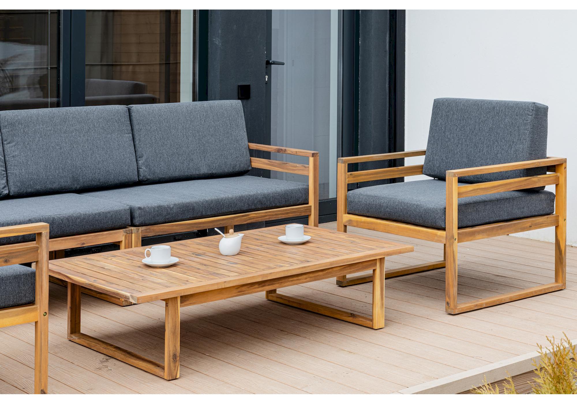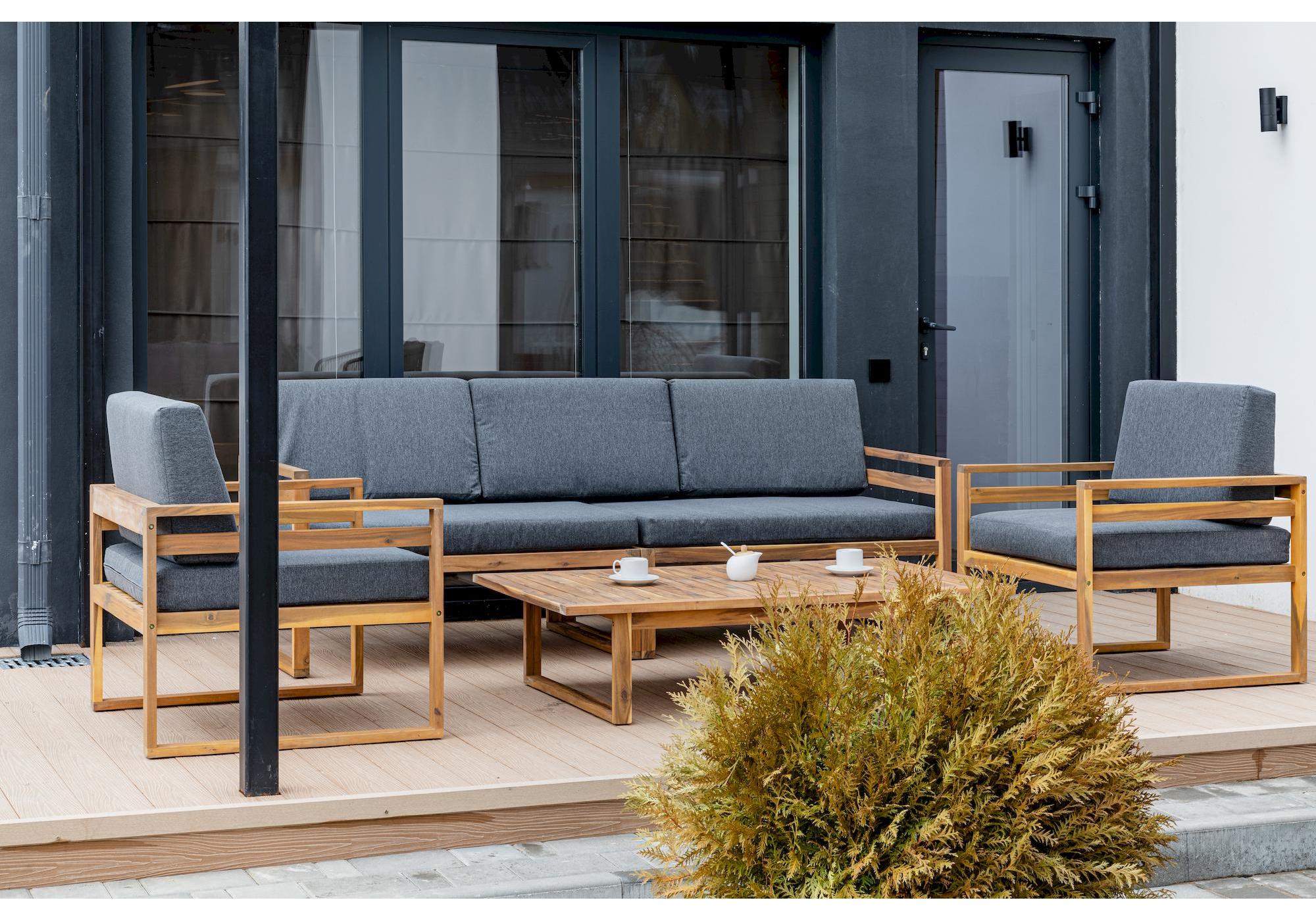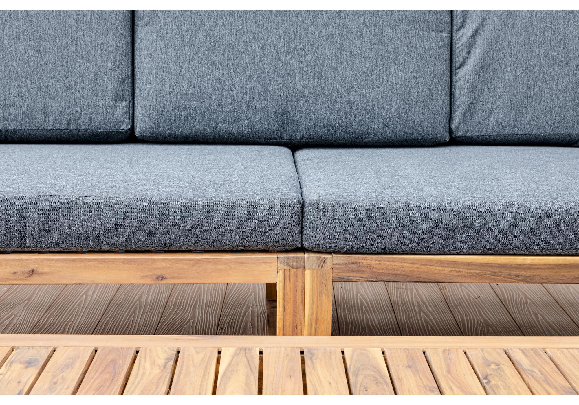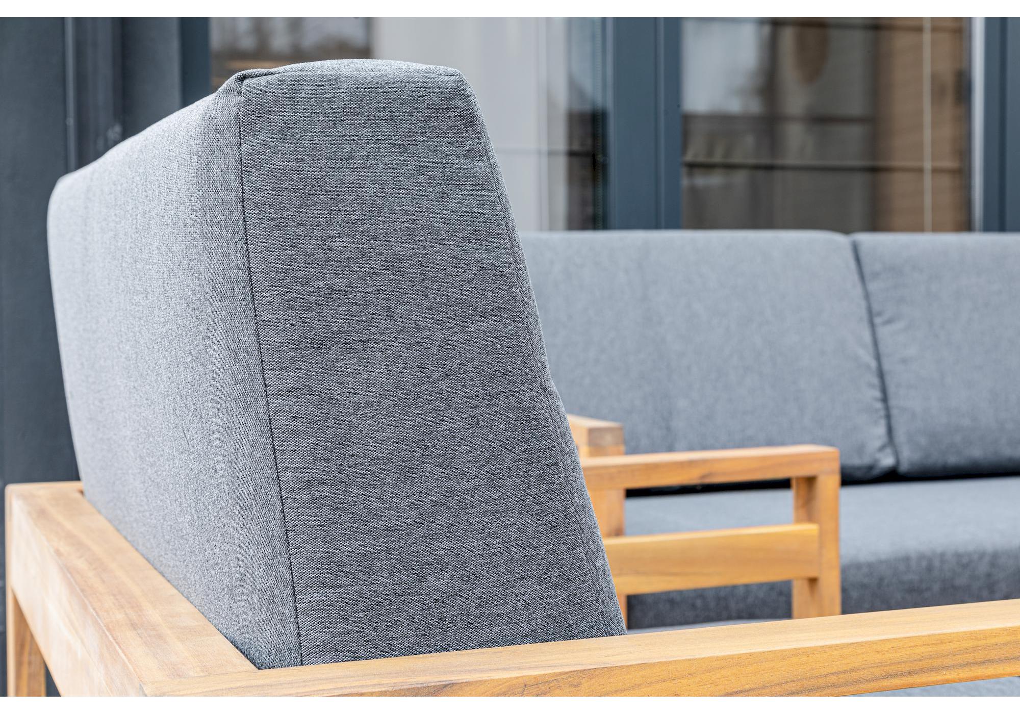 Натуральный цвет комплекта гармонично сочетается с серыми подушками. На лаунж-зоне BROOKLYN могут разместиться до 5 человек, каждое посадочное место выдерживает до 150 кг нагрузки. Комплект отлично сочетается с другими товарами из коллекции BROOKLYN и натурального дерева.