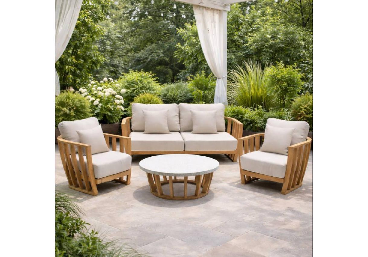 Универсальная эстетика: Теплый тон натуральной акации в сочетании с нежным бежевым цветом подушек создает спокойную, гармоничную палитру. Такой набор органично впишется в любой ландшафтный дизайн, от классического до современного.