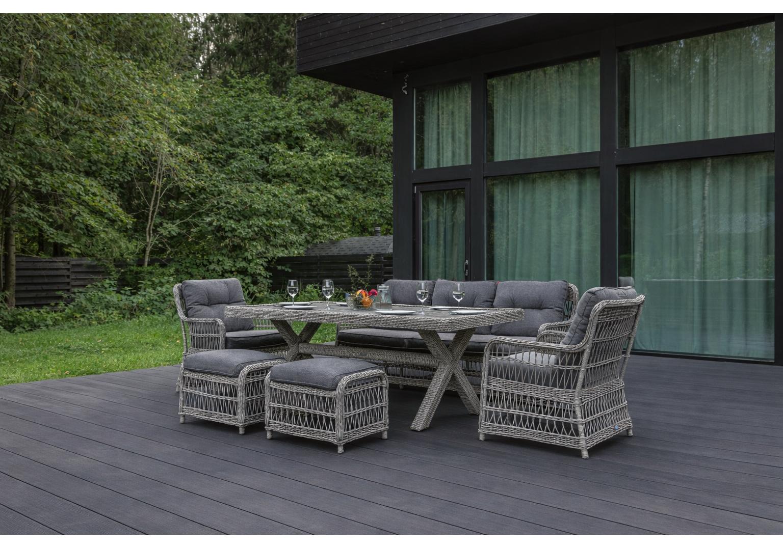 Обеденный комплект ALBERT в сером цвете из искусственного ротанга