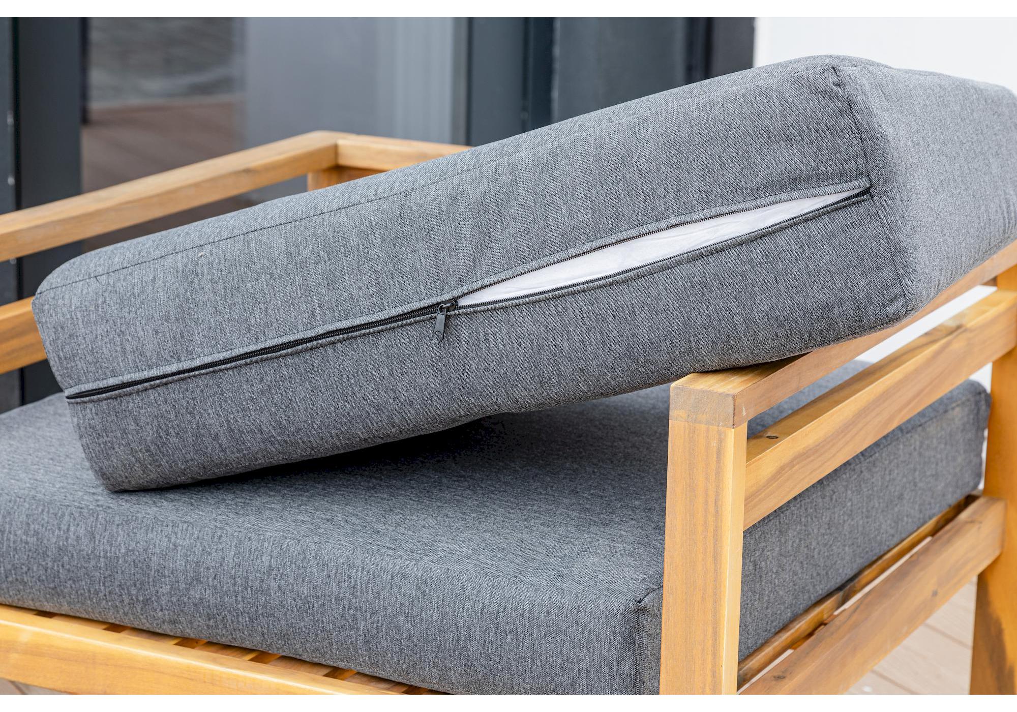 Чехлы на подушки выполнены из водоотталкивающей ткани олефин для легкого ухода. Наполнитель подушек - поролон, обеспечивают комфорт и поддержку.