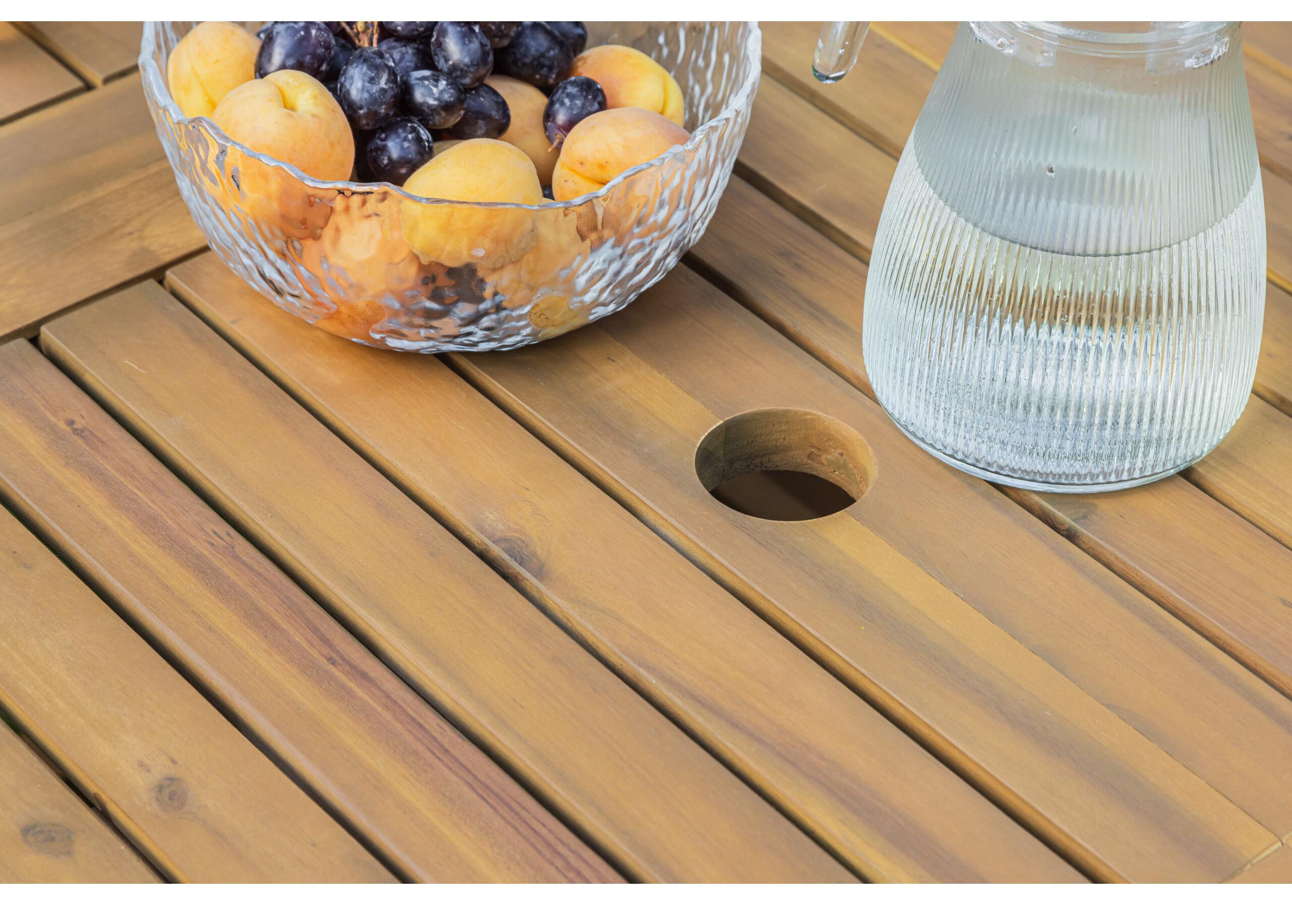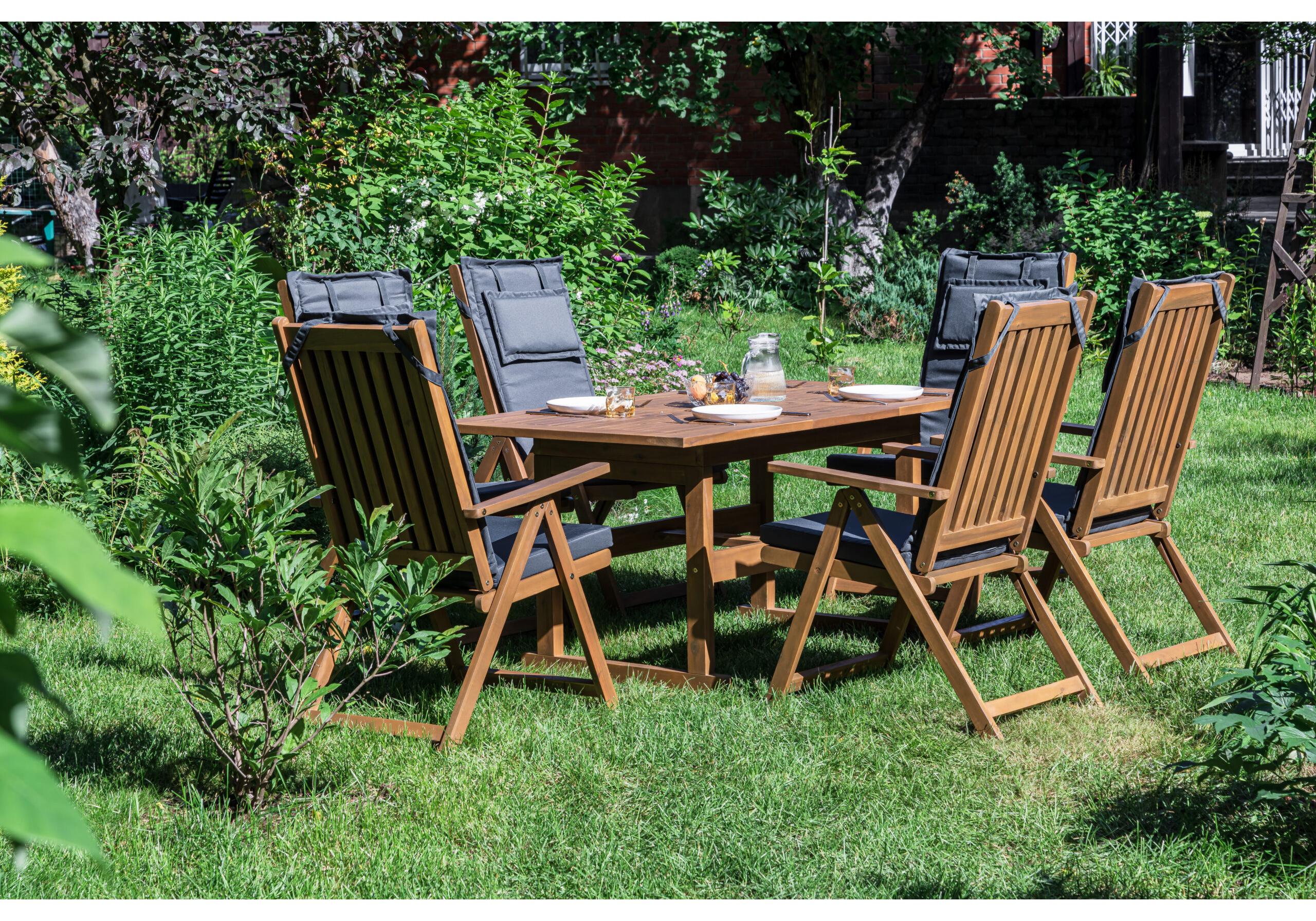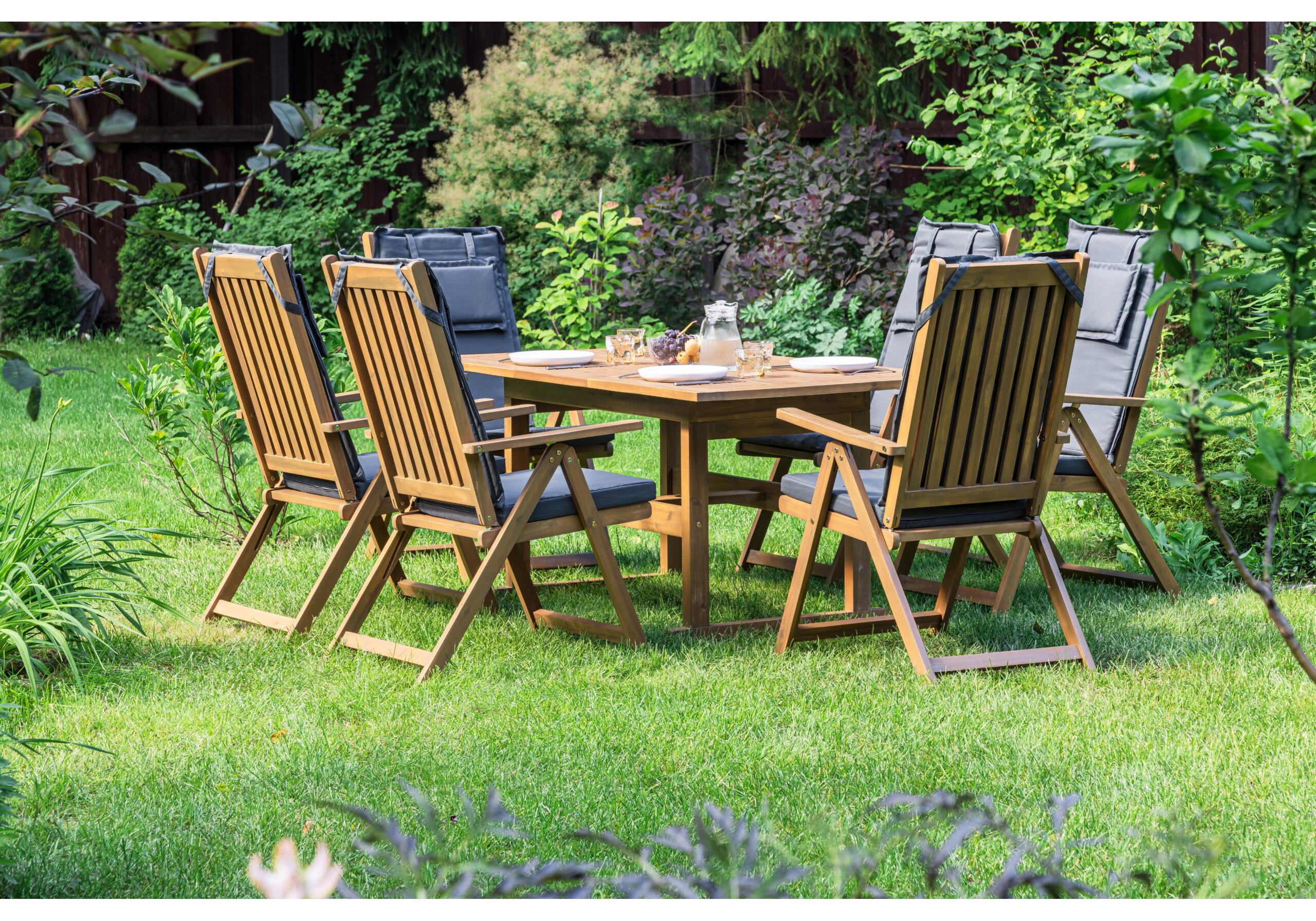 Практичный и стильный обеденный комплект KIMBERLY из акации — идеальное решение для Вашего уличного пространства!