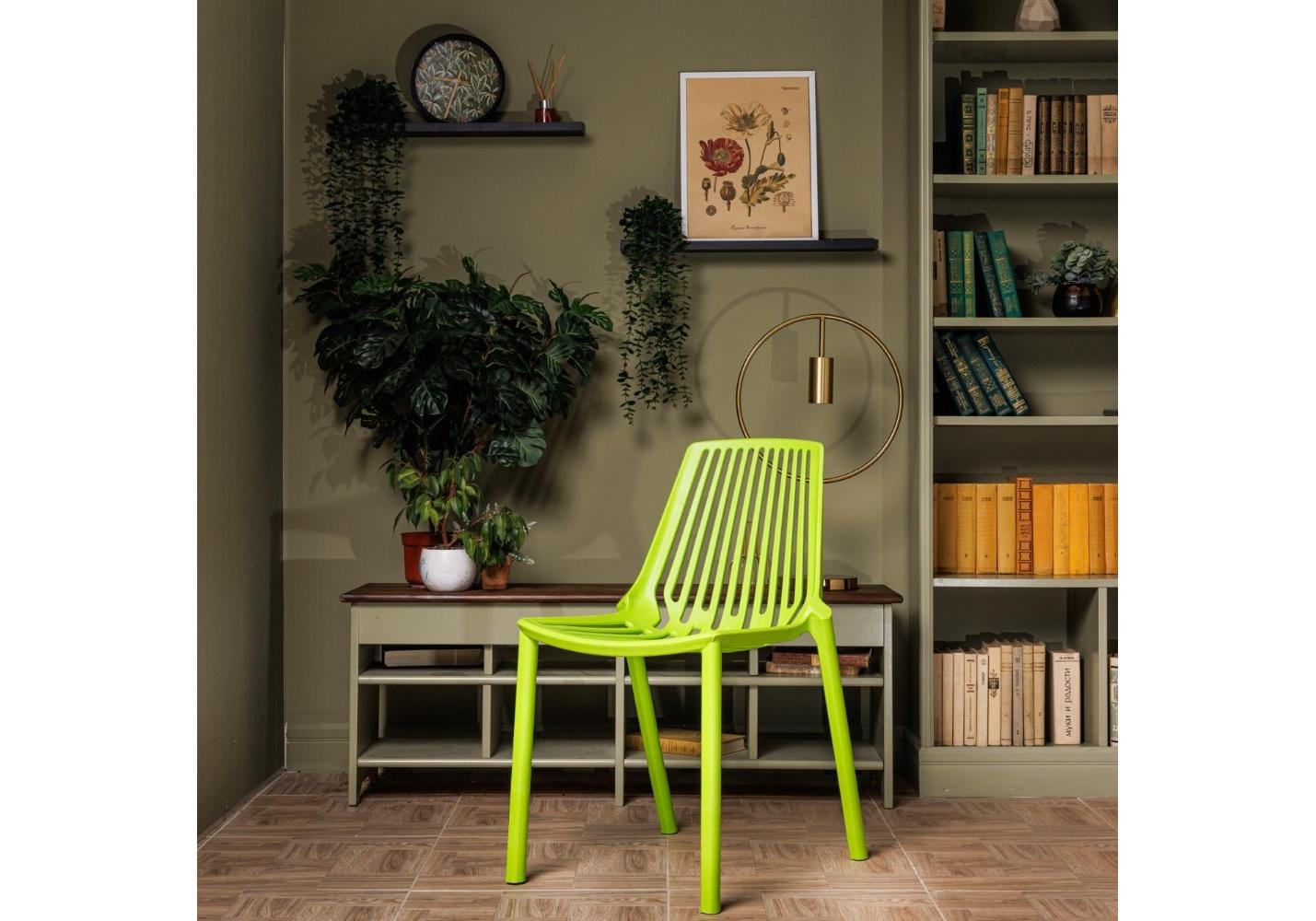 Этот стильный пластиковый стул из окрашенного в массе полипропилена, не только привлекает внимание своим насыщенным зеленым цветом, но и отличается высокой прочностью и долговечностью.