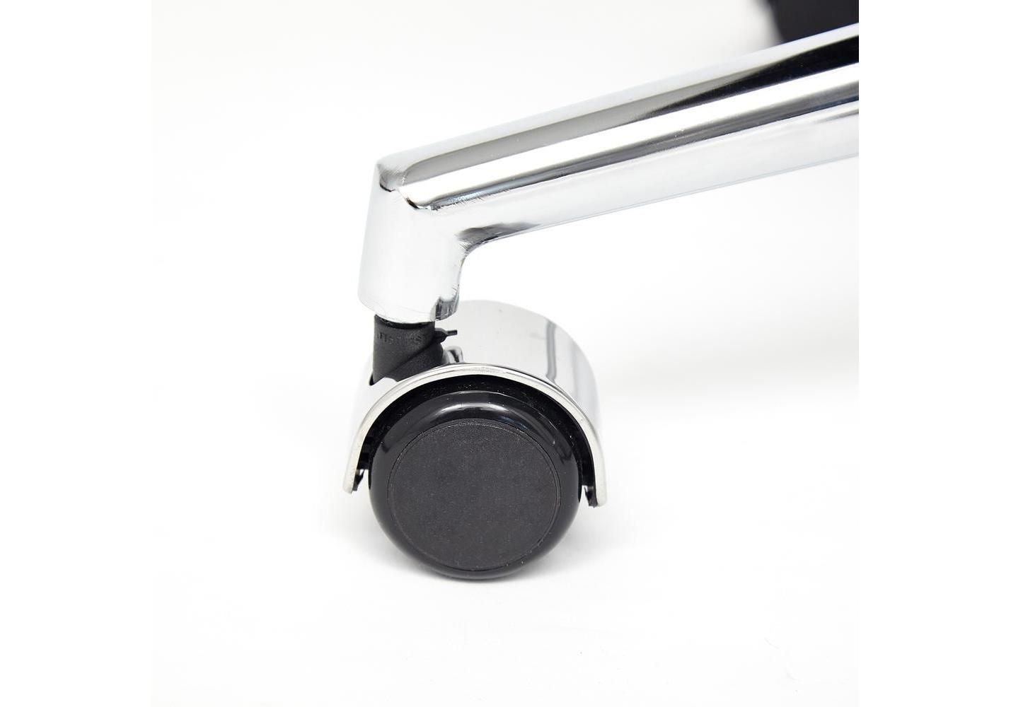 Механизм подъёма без функции качания. Без подлокотников. Крестовина хромированная металлическая. Ролики - прорезиненные с хромированными накладками. Максимальная нагрузка 90 кг.